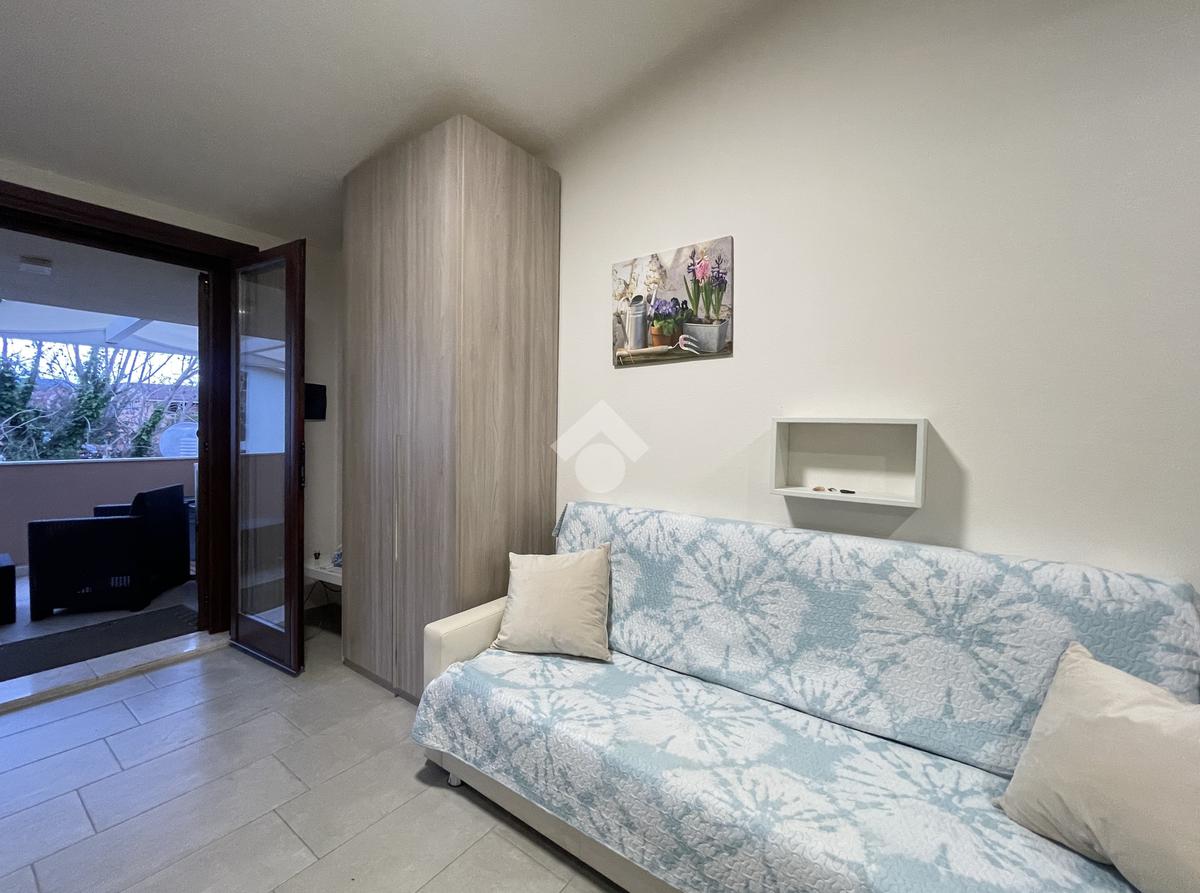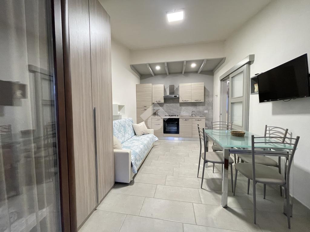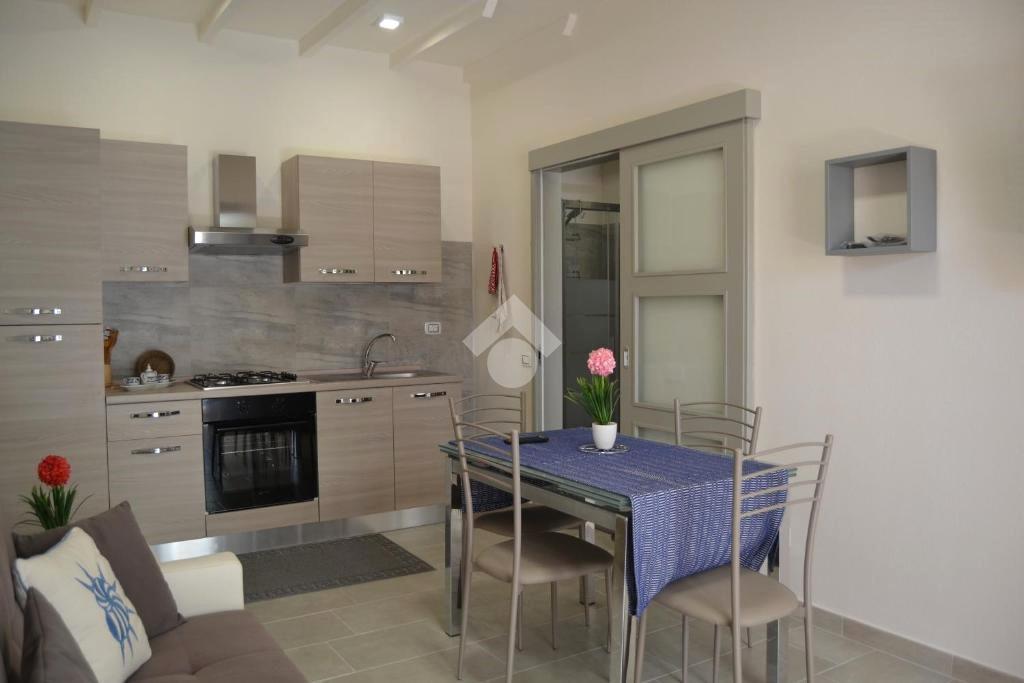 Al piano terra dal cortile attrezzato si accede alla zona giorno dotata di soggiorno-pranzo con angolo cottura, disimpegno, bagno ed una camera. Al primo piano, accessibile attraverso una scala esterna, un comodo terrazzo da l'accesso alla seconda porzione composta anch'essa da soggiorno-pranzo con angolo cottura, disimpegno, bagno ed una camera. L'immobile è dotato di tutti i confort per garantire un comodo soggiorno ed è ubicato in una zona pianeggiante prossima a tutti i servizi e distante pochi minuti a piedi dal centro.