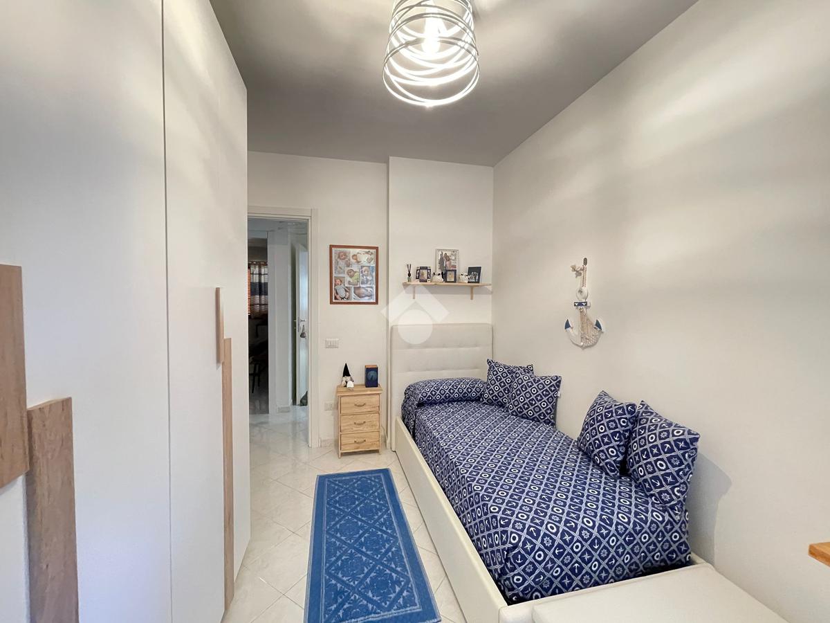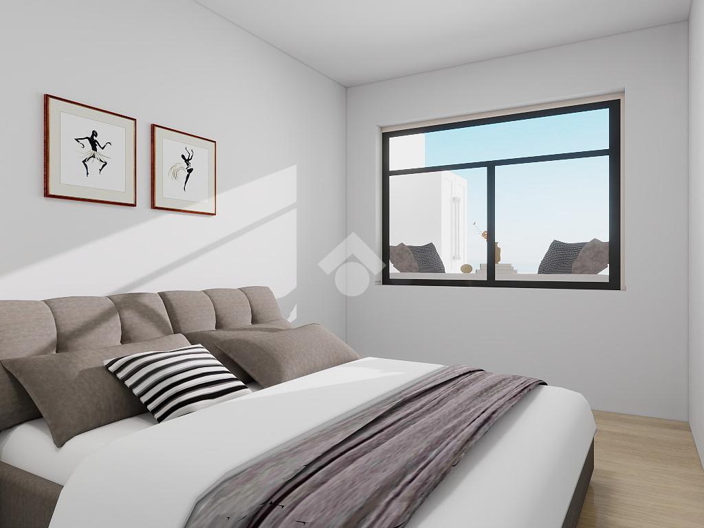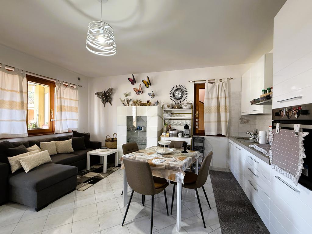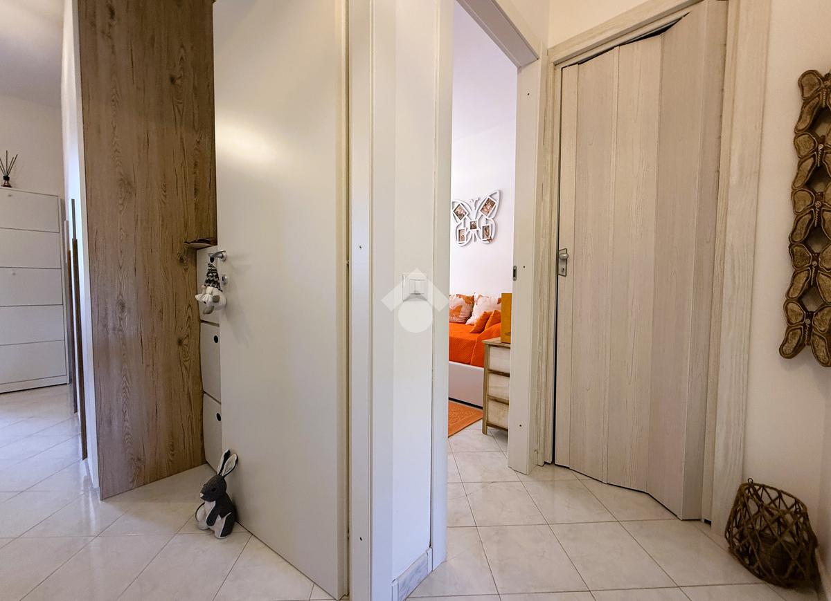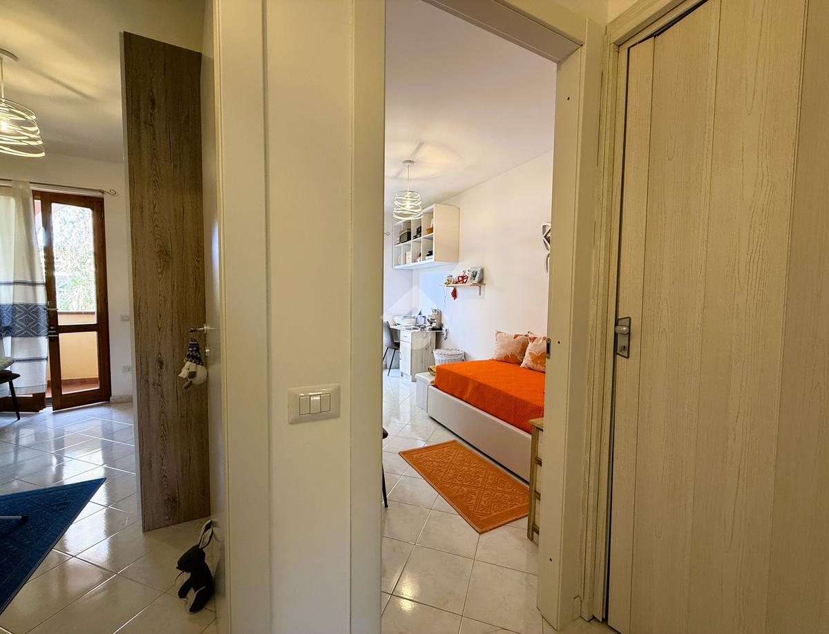 La casa si presenta con un'ampia sala dotata di angolo cottura che affaccia sul terrazzo antistante comodo e spazioso. Disimpegnata la zona notte che si compone di tre camere di cui una matrimoniale ed il bagno; le camere affacciano su due terrazzi privati esposti su area di verde pubblico. Con pratico e funzionale ripostiglio