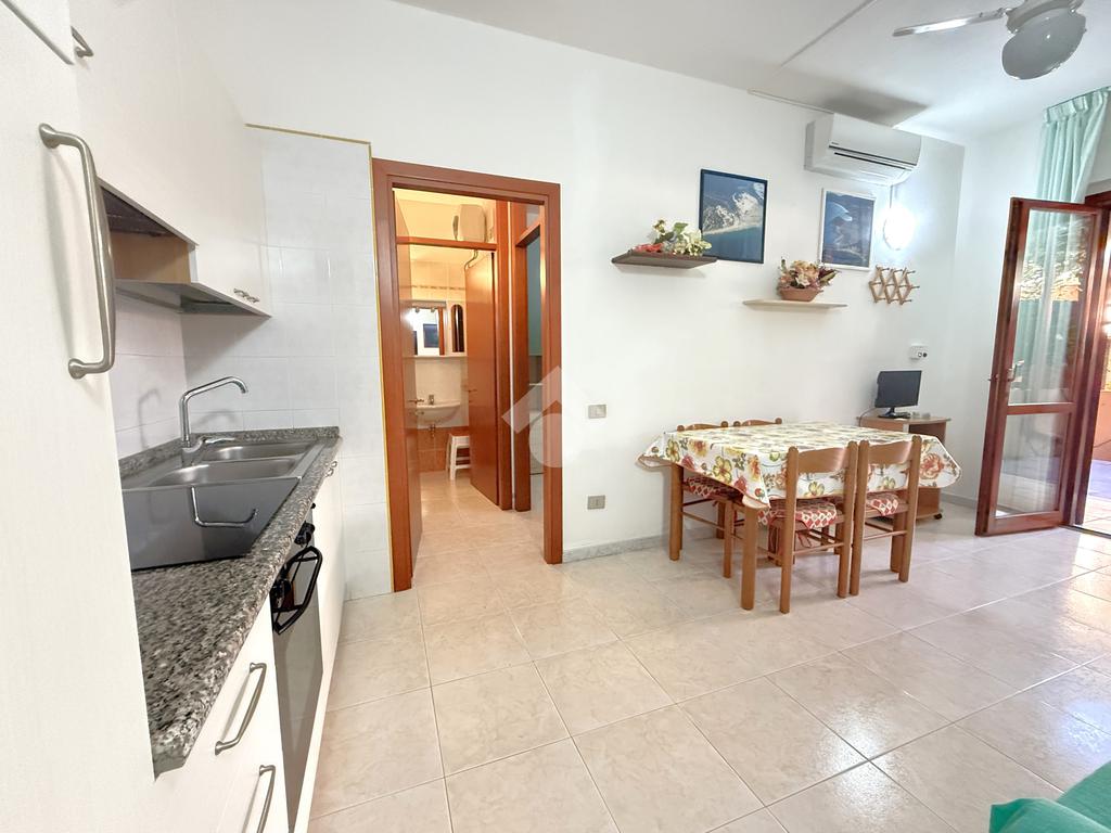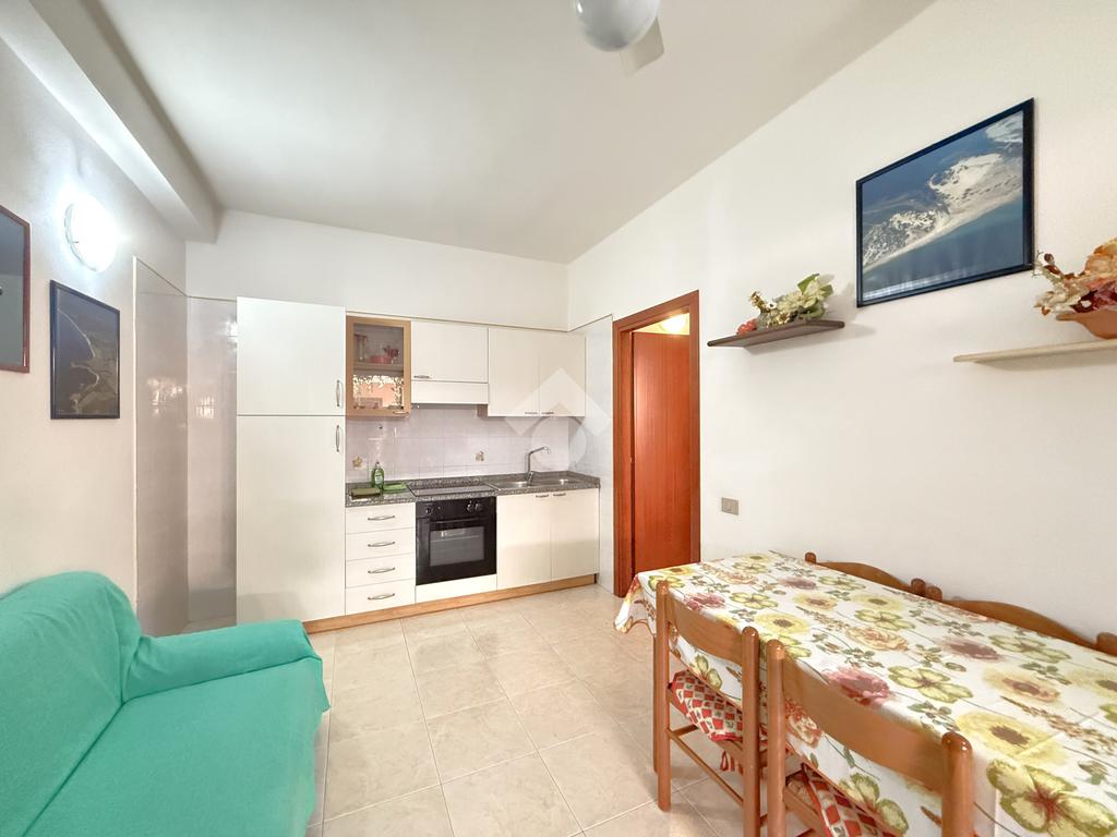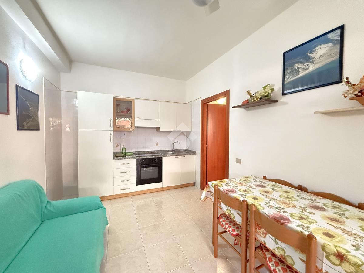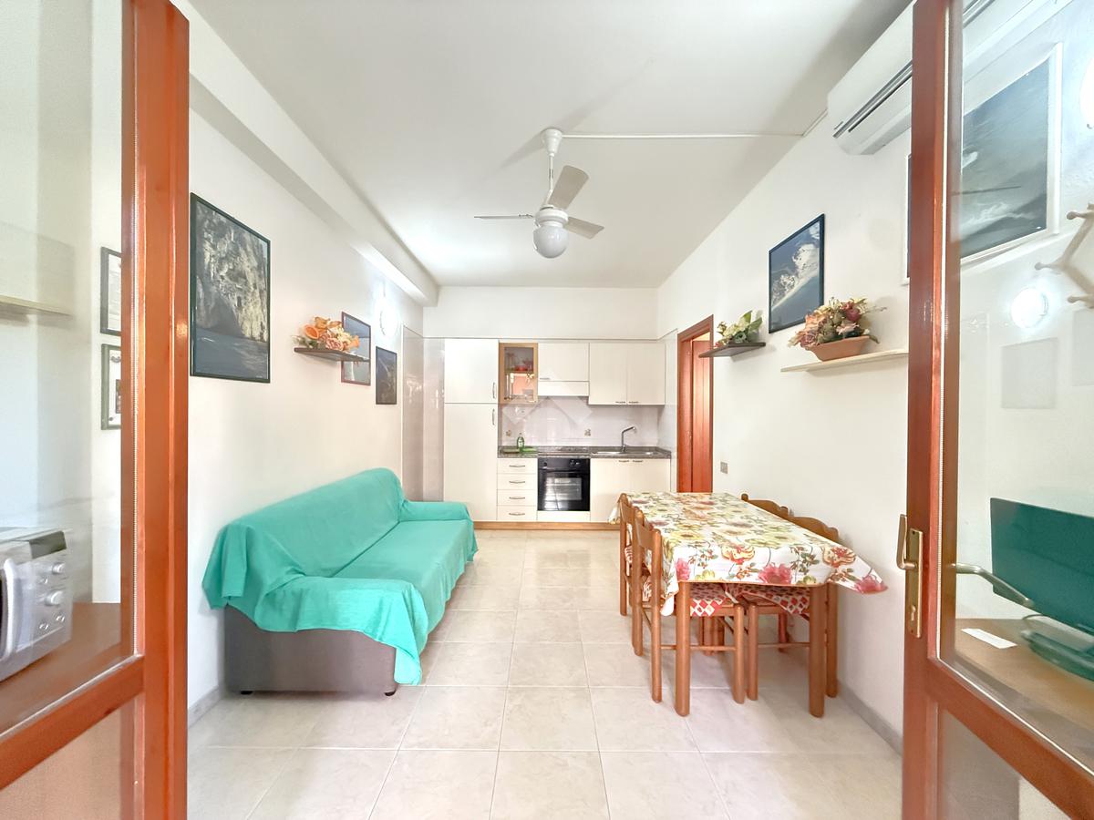 All’ingresso ci accoglie uno spazio esterno privato, ideale per rilassarsi dopo una giornata di mare, completo di comodo tavolino e doccia esterna: il luogo perfetto per vivere al meglio le giornate all’aperto. La zona giorno, luminosa e ben distribuita, integra in modo funzionale il soggiorno con l’angolo cottura, creando un ambiente conviviale e accogliente. Il bilocale dispone inoltre di un bagno pratico e di una camera matrimoniale riservata, con affaccio sul cortile, che garantisce privacy e tranquillità. Completa la proprietà un posto auto privato, un plus importante soprattutto nei mesi estivi.