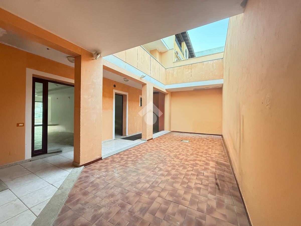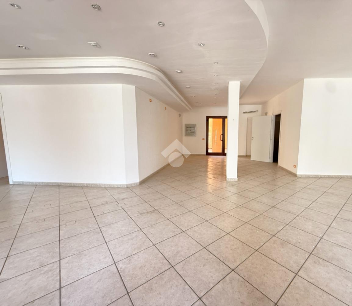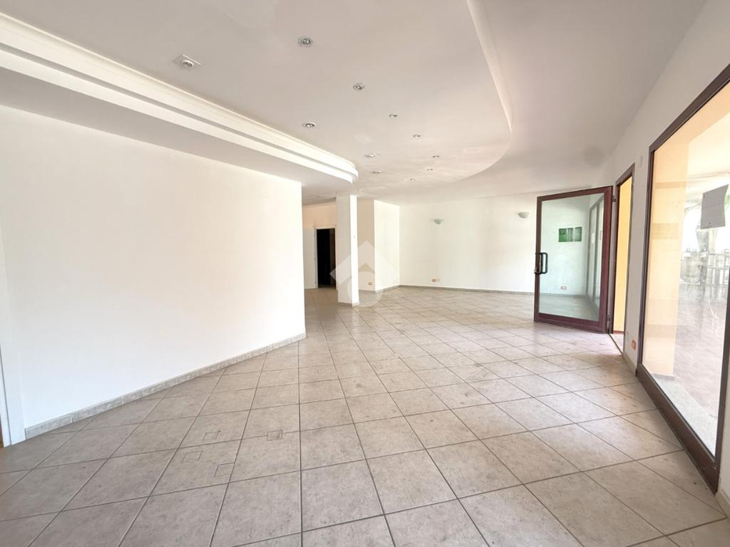 Il locale si sviluppa in un’ampia soluzione open space, luminosa e facilmente modulabile, dotata di doppio servizio e veranda retrostante. Da quest’ultima si accede direttamente al garage, situato nella parte seminterrata, comodo per carico e scarico merci. Il garage è inoltre accessibile anche dal fronte strada tramite ingresso carrabile con scivolo.