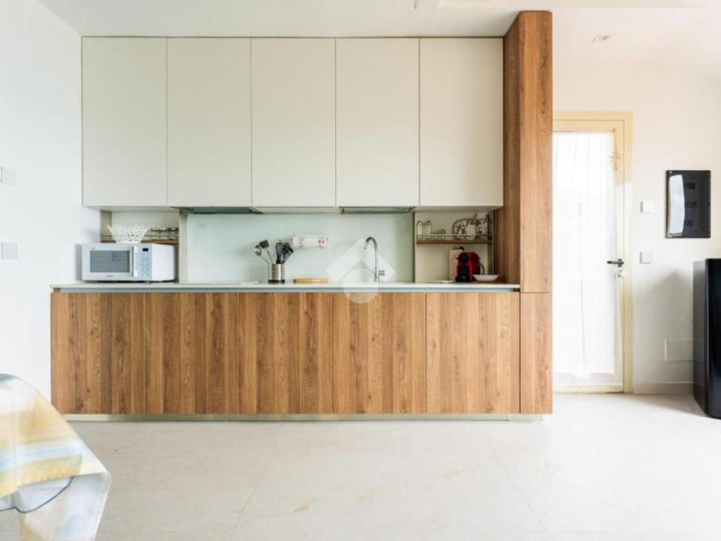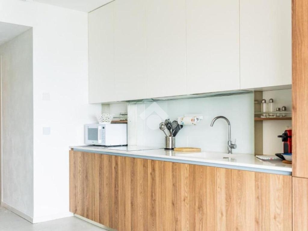 Sono presenti rilevatori di presenza che automatizzano le funzioni ambientali, un piano cottura a induzione a filo ed una tenda motorizzata gestibile manualmente o attraverso il sistema domotico per un ottimale controllo della luminosità ed il calore negli ambienti.