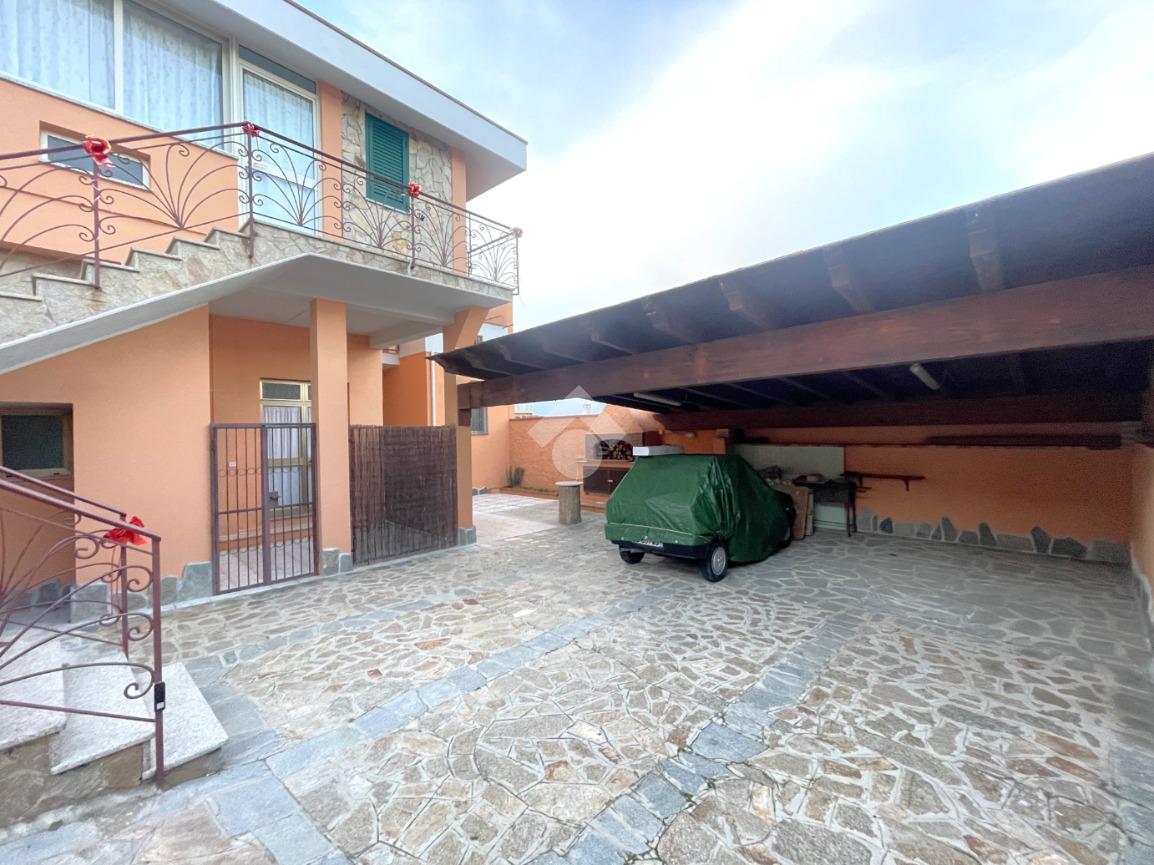 L’ingresso carrabile ci conduce direttamente al cortile privato della casa, dove troviamo un posto auto coperto da un pratico pergolato, ideale per parcheggiare in sicurezza e godere di uno spazio esterno curato.