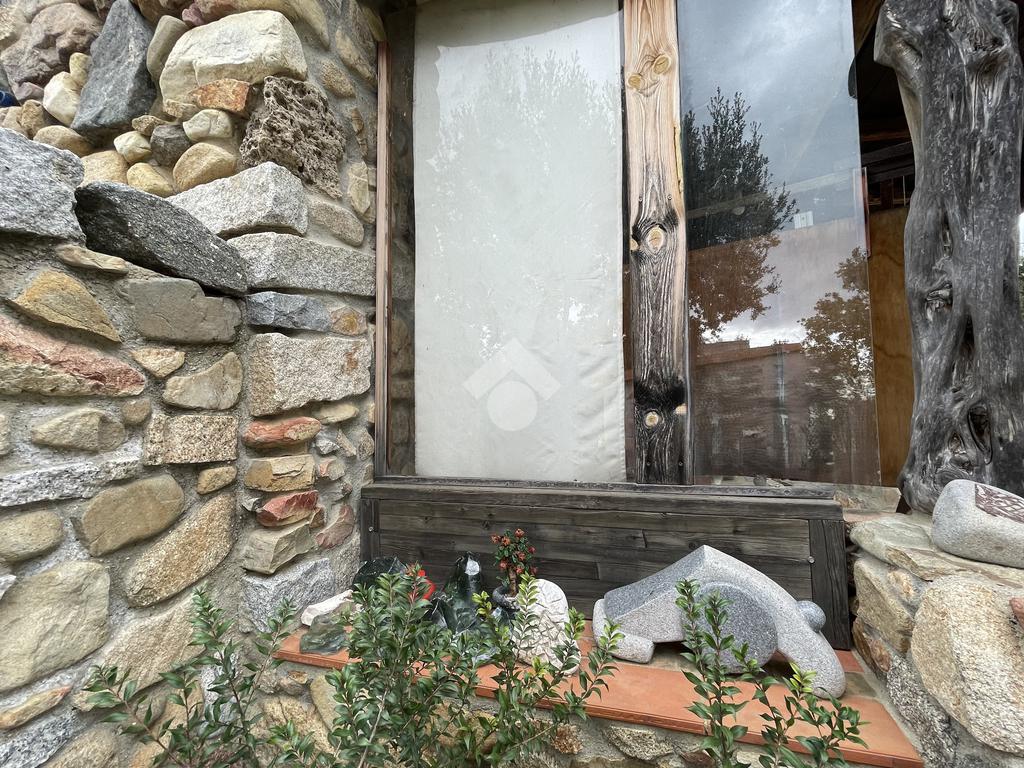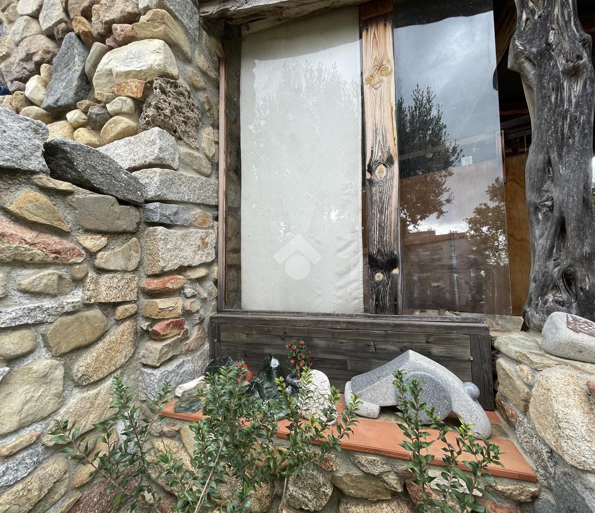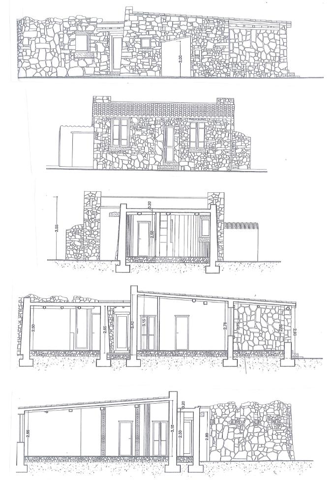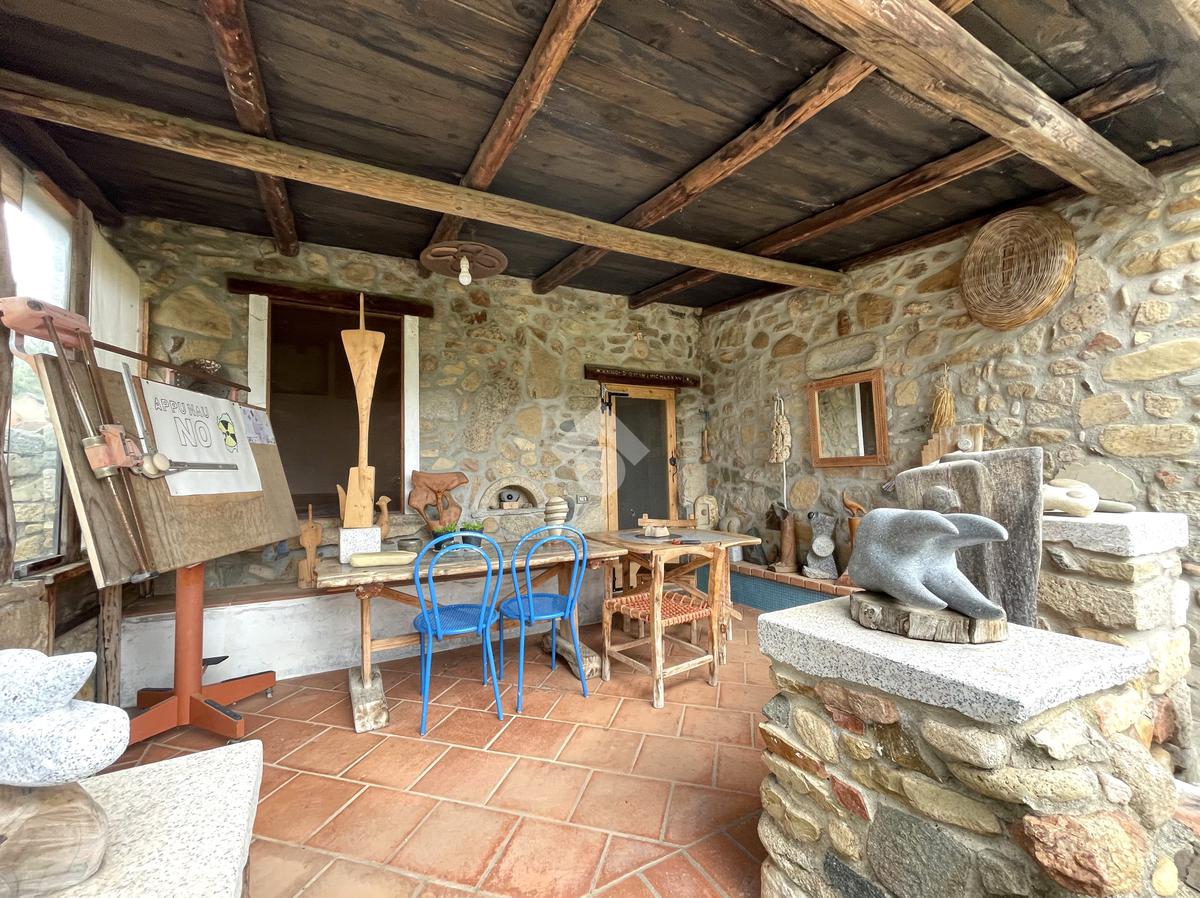 Accediamo attraverso una veranda/laboratorio attrezzata alla costruzione principale, che presenta una zona totalmente dedicata alla lavorazione (sala con angolo cottura), di seguito un magazzino (camera) e un ripostiglio (bagno).