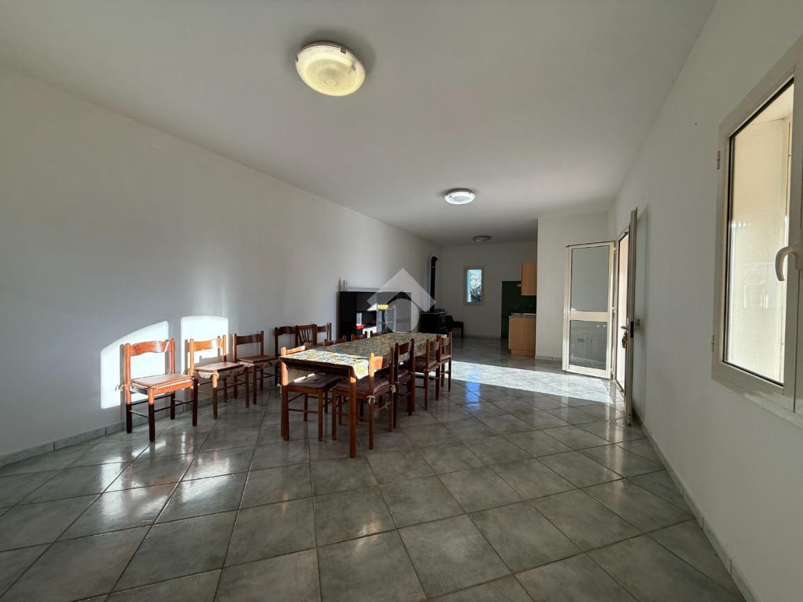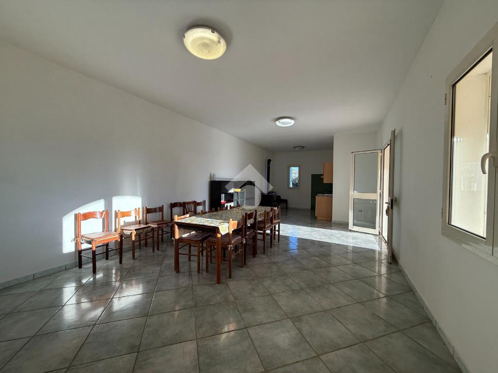 La casa si sviluppa su un unico livello e ci accoglie con un ampio e luminoso soggiorno che affaccia sulla veranda antistante, dismpegnati dalla sala con angolo cottura altri due vani oltre il bagno. Gli ambienti sono dotati di ampie aperture che conferiscono ariosità all'abitazione e panoramicita sul terreno circostante. Completano la proprietà altri due vani, in aderanza al corpo di fabbrica, classati come ricovero attrezzi ed aventi accesso dall'esterno mediante un portone scorrevole.