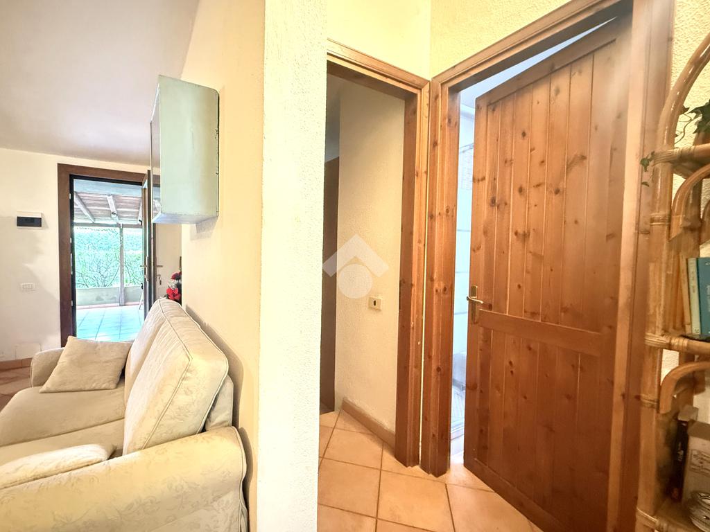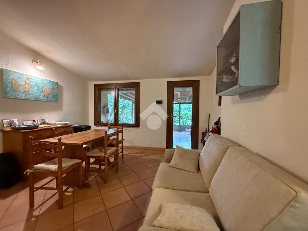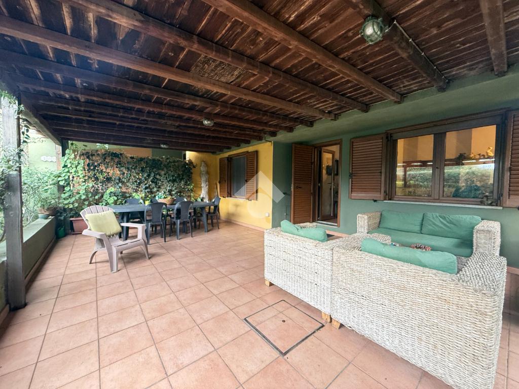 Dalla zona giorno, così come direttamente dal giardino, si accede alla parte retrostante dell’abitazione, dove si trova una seconda veranda coperta, riservata e pratica, ideale come ulteriore spazio relax. Completa la proprietà una cantina spaziosa con accesso indipendente, versatile e funzionale, perfetta come locale deposito o spazio da attrezzare secondo le proprie esigenze.